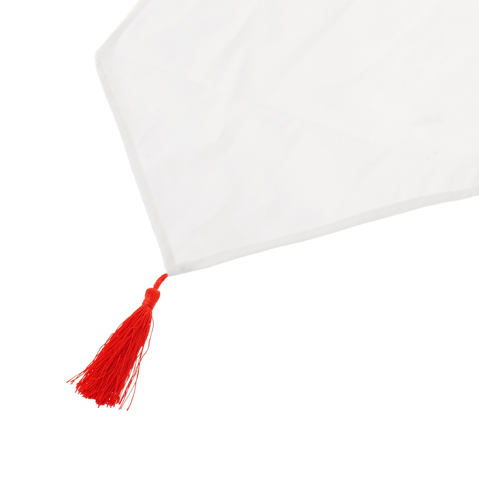Capetele sunt finisate cu ciucuri decorativi roșii, oferind un aspect festiv. Datorită materialului rezistent și ușor de întreținut, această față de masă poate fi spălată și refolosită fără pierderea formei sau a texturii.