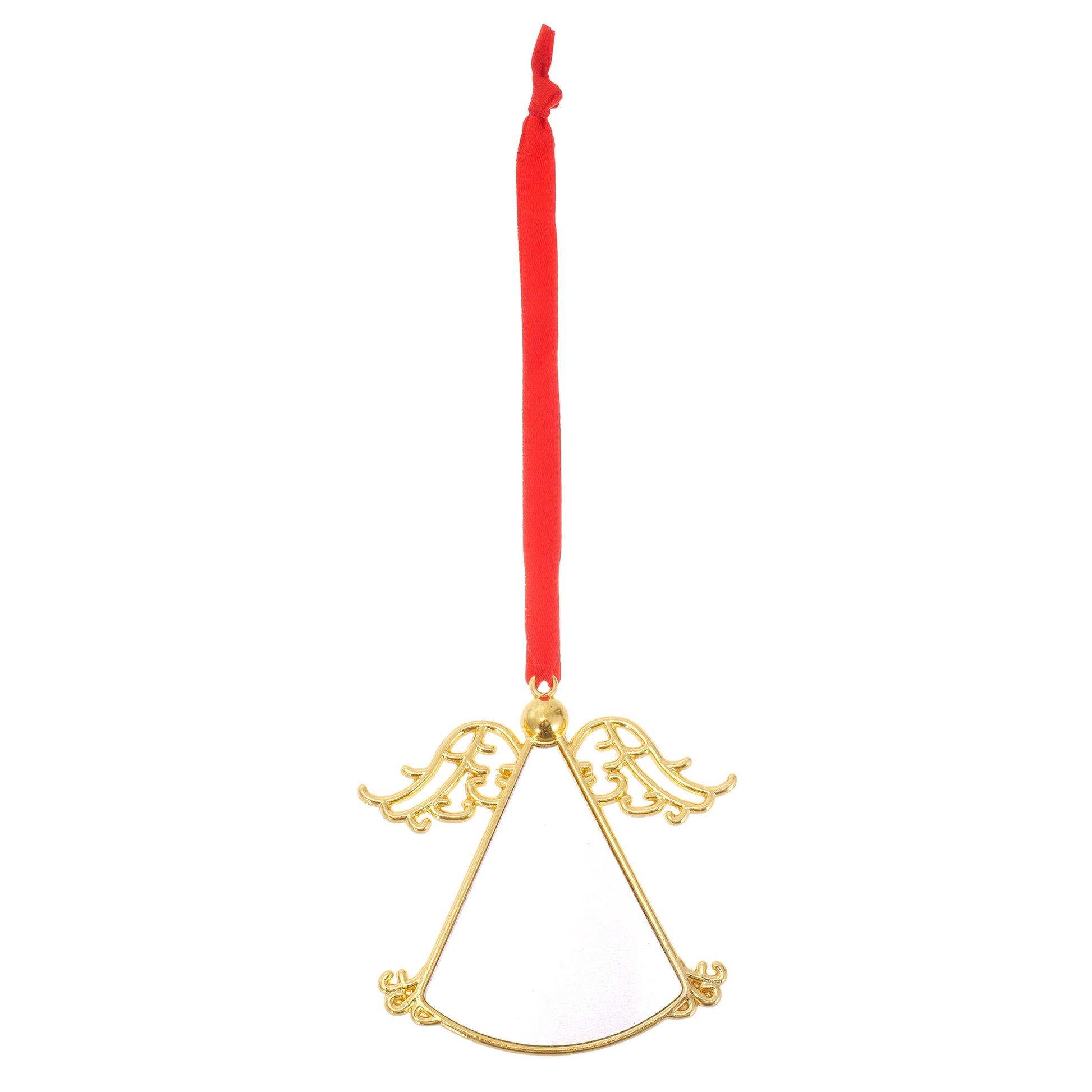 Ornament de Crăciun din metal cu finisaj auriu, în formă de îngeraș, prevăzut cu zonă sublimabilă triunghiulară ce permite personalizarea prin sublimare sau print UV.