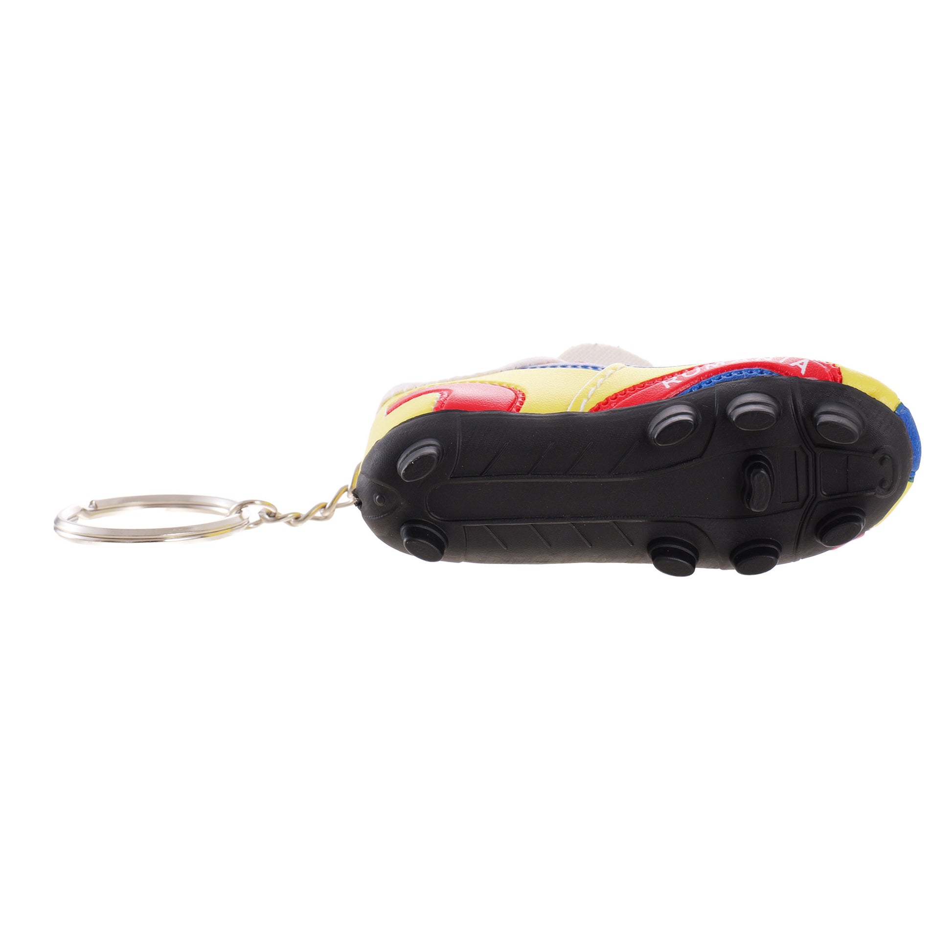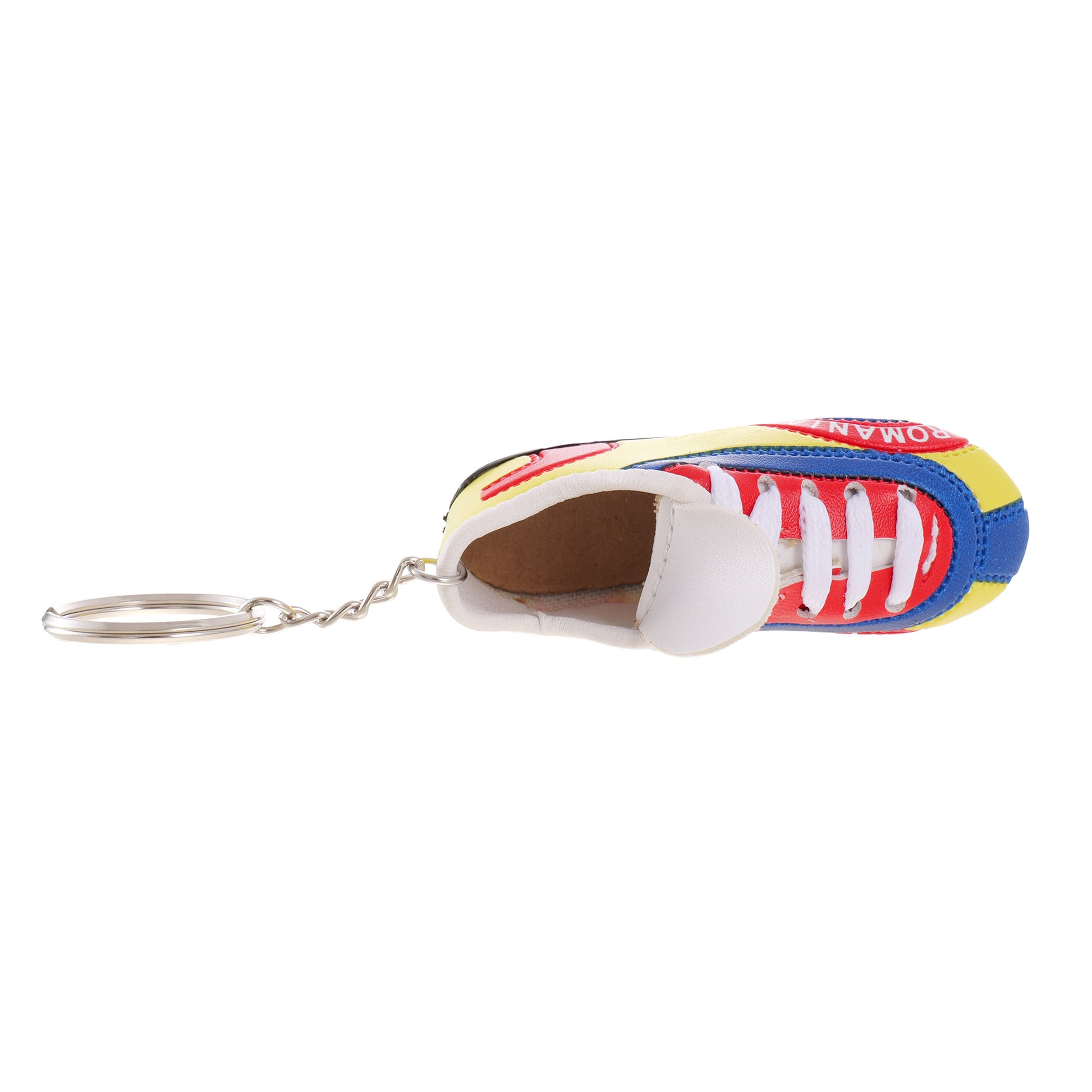 Breloc sub formă de gheată de fotbal, decorată în culorile tricolorului românesc (roșu, galben, albastru) și inscripționată cu „ROMANIA”. Este un accesoriu compact și de efect, perfect pentru suporterii pasionați de fotbal și pentru cei care doresc să își exprime mândria națională.