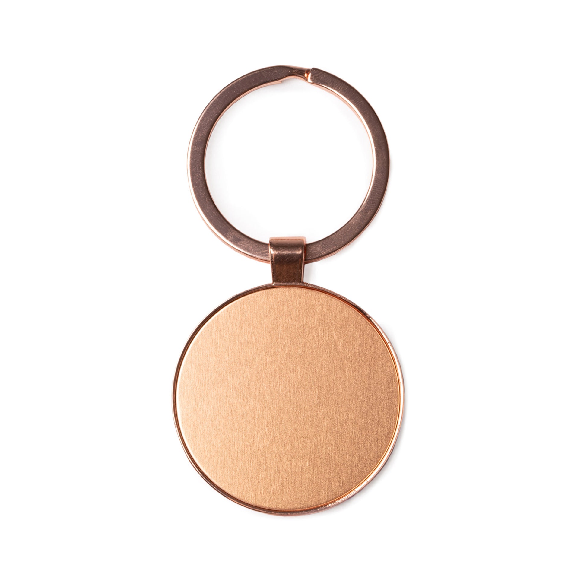 Breloc metalic din cupru, cu finisaj uniform și suprafață netedă, Construcția permite mai multe opțiuni de personalizare, fiind potrivit pentru cadouri, promoții sau utilizare zilnică.