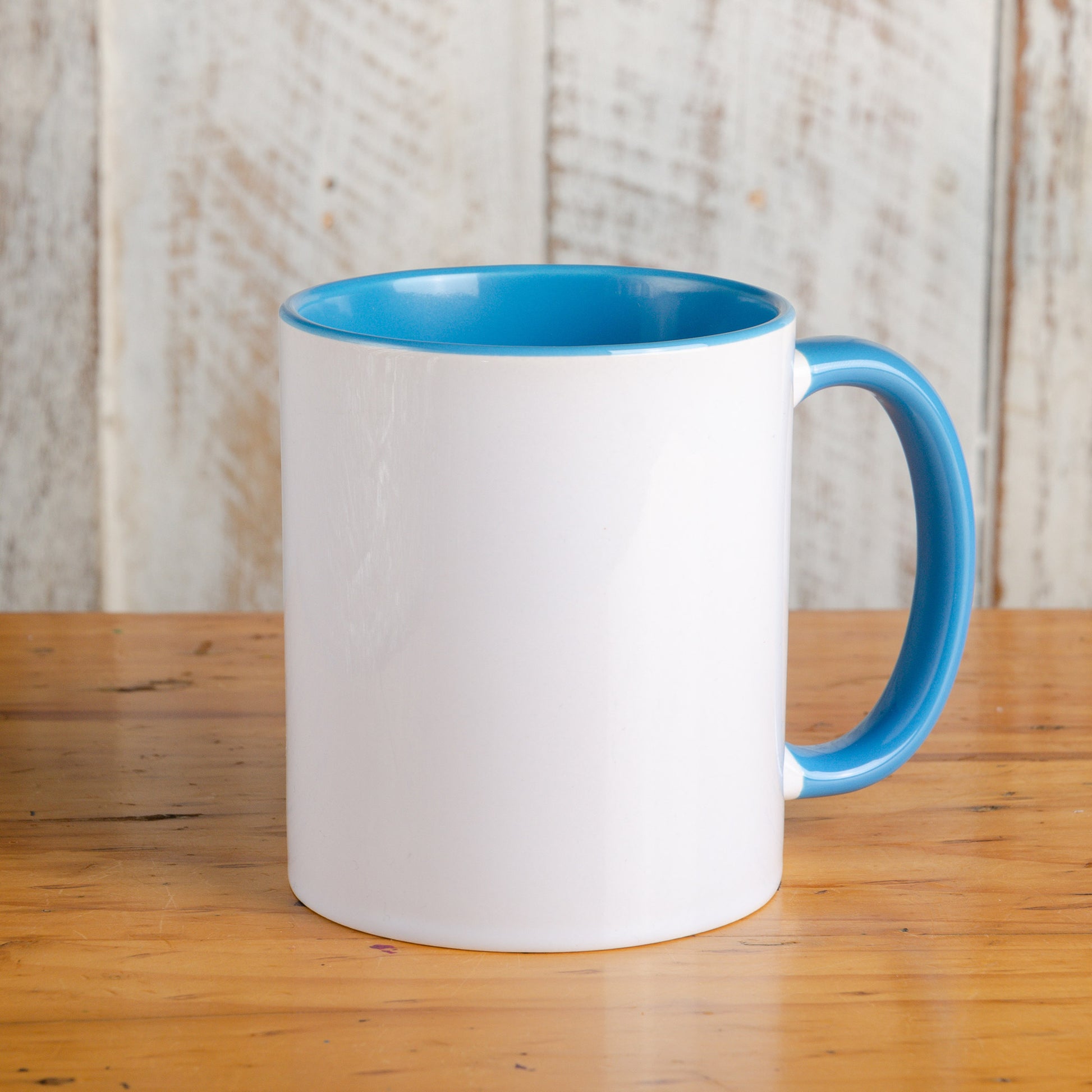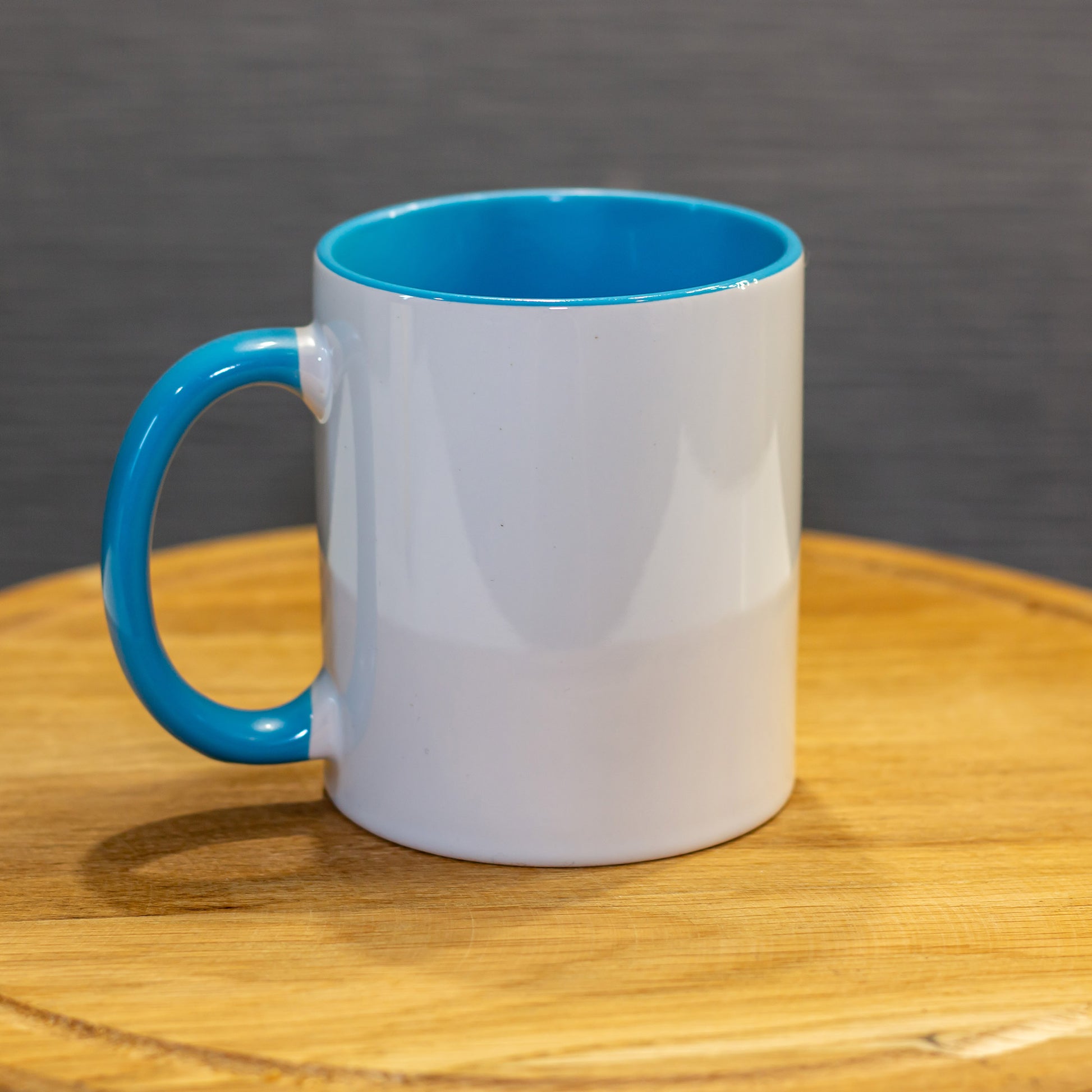 Cană din ceramică albă, calitate AA, având interiorul și toarta colorate. Suprafața exterioară este tratată cu un strat de lac special pentru sublimare, fiind un produs destinat atelierelor care doresc să ofere o alternativă estetică la cana albă clasică.