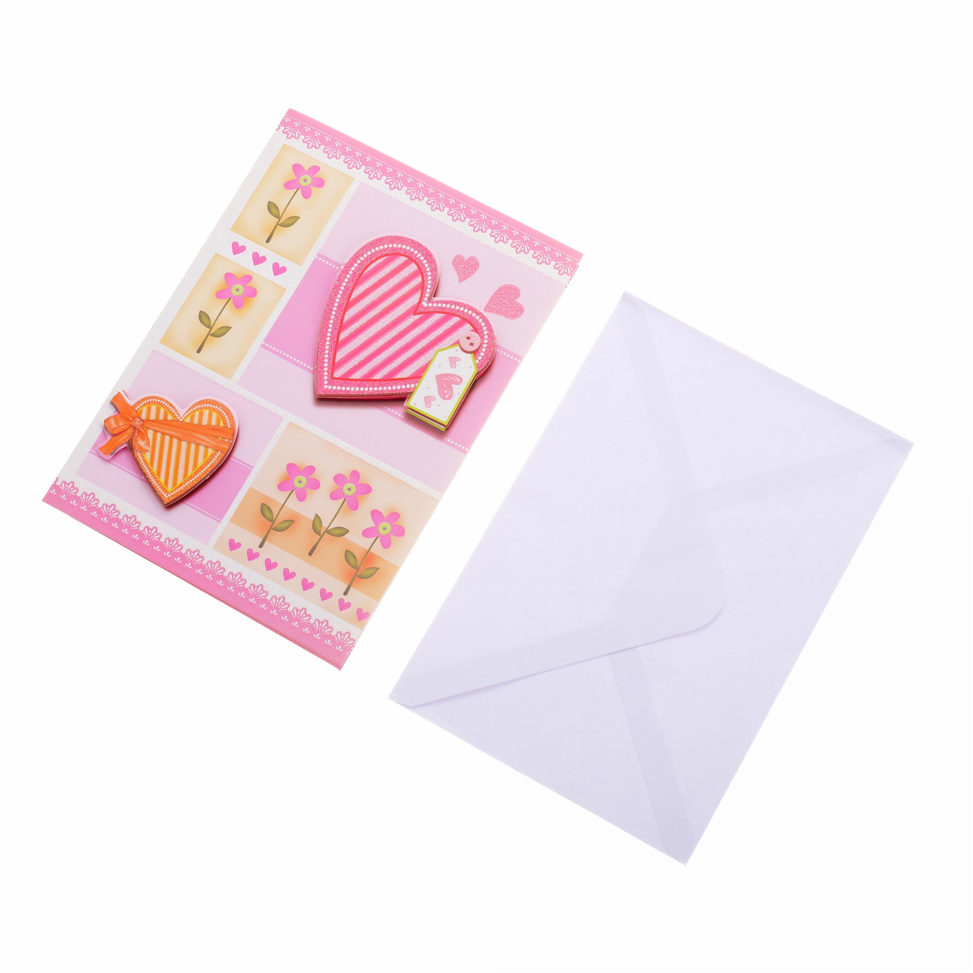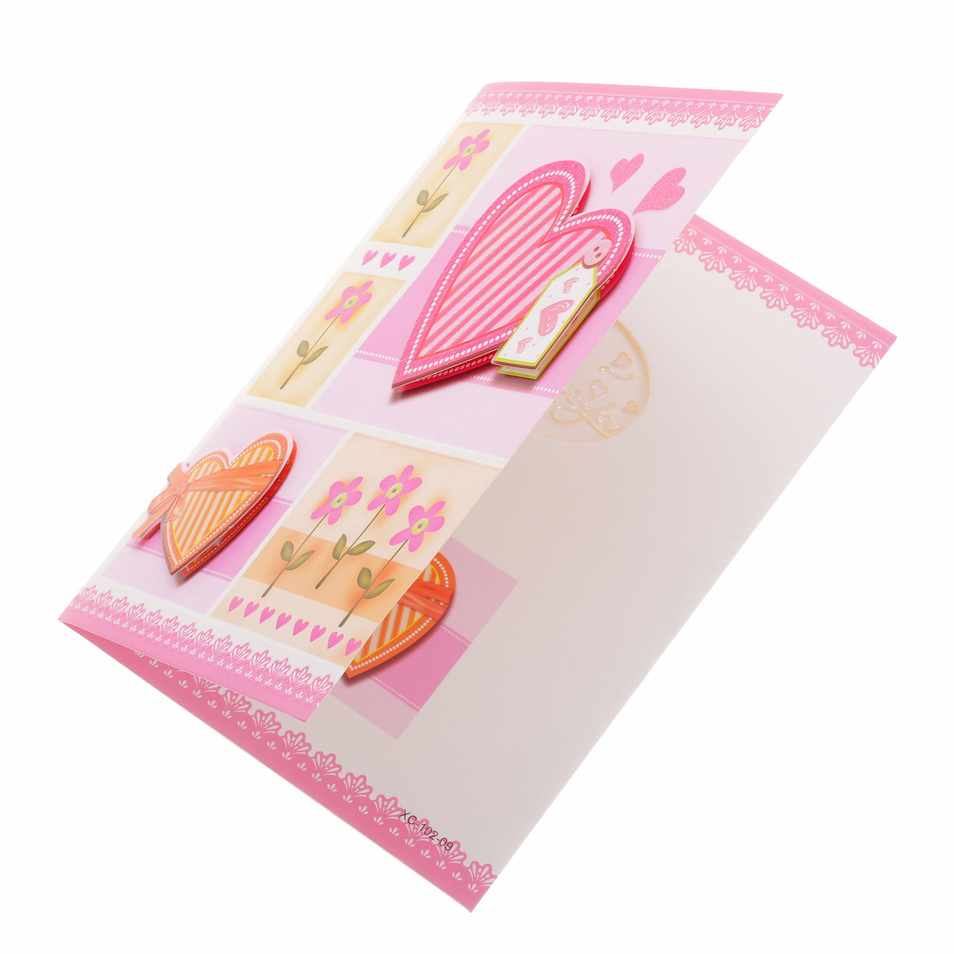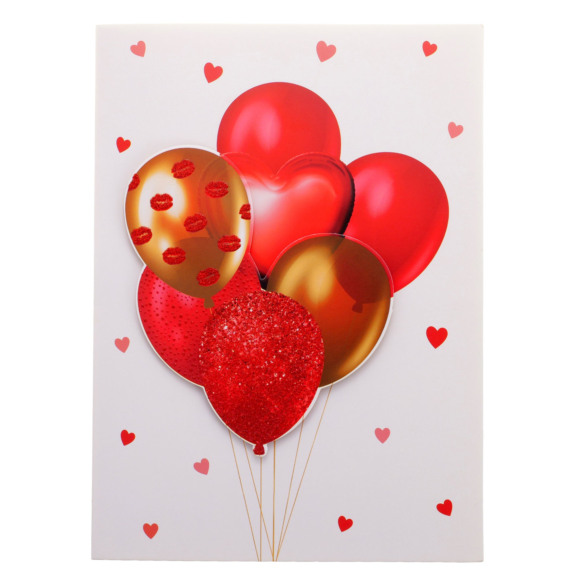 Felicitari realizată din hârtie cartonată premium, decorate cu baloane, inimi și detalii 3D.