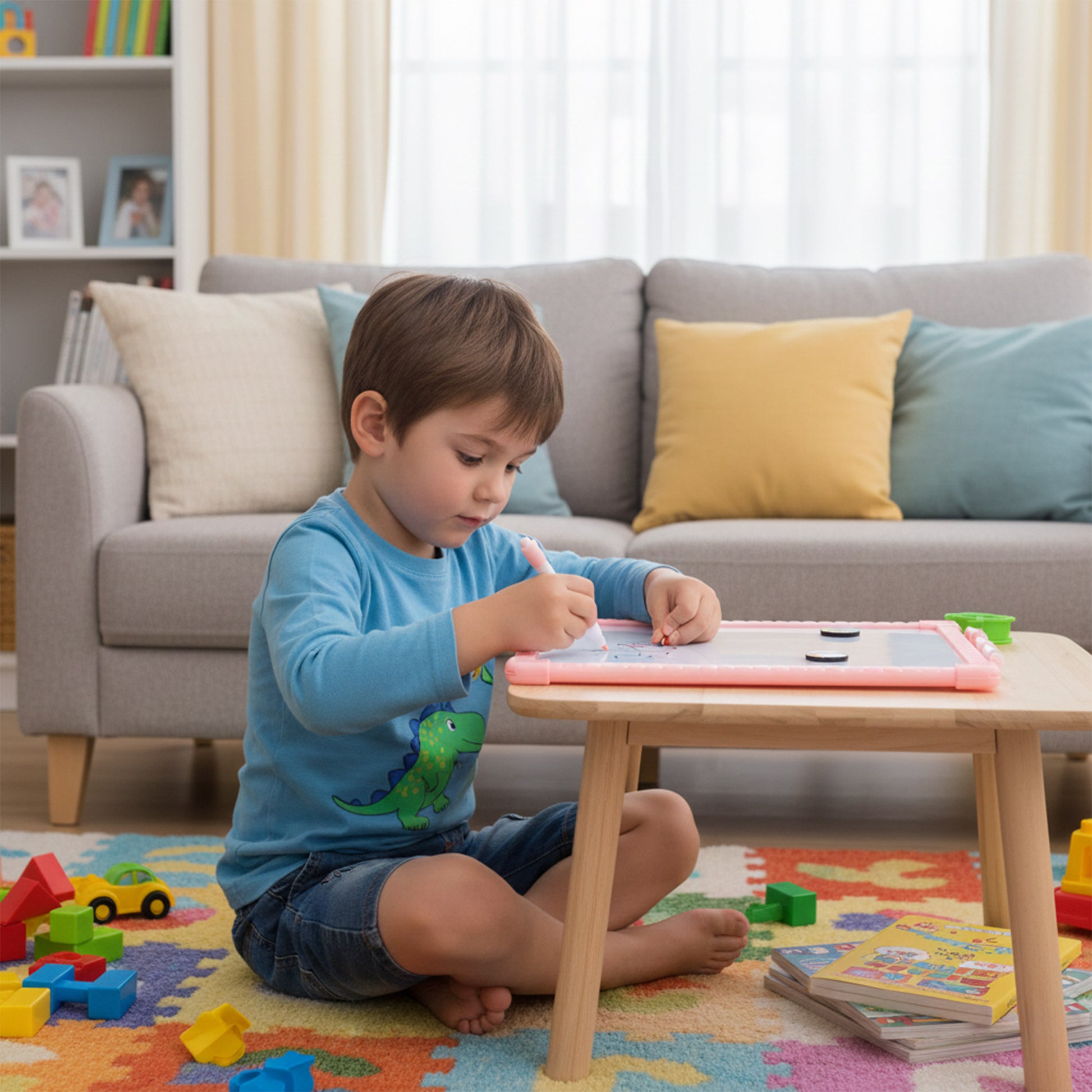 Tabla magnetica practica, conceputa pentru activitati educative, notite rapide sau desen. Formatul compact o face usor de utilizat pe birou sau de transportat in ghiozdan, fiind potrivita pentru copii si elevi.